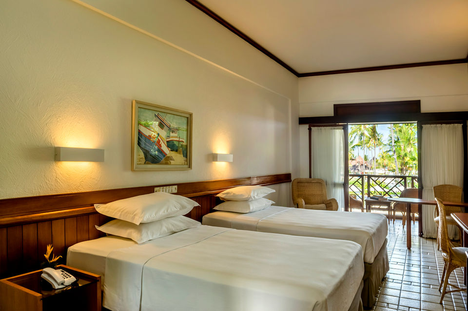Uma estrutura com 202 acomodações, todas com varanda, que se dividem entre bangalôs, apartamentos e suíte. Confira mais detalhes das opções, a seguir:
