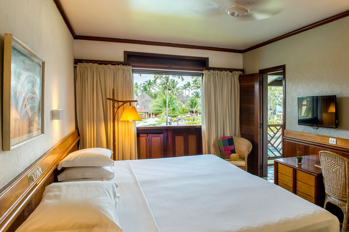 Uma hospedagem com 2 ambientes quarto e sala, a suíte é indicada especialmente para famílias, com vista para a piscina ou para o jardim. Ela é uma das acomodações mais bem equipadas do Summerville Beach Resort.
